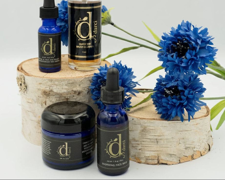Darci is a seventh-generation farmer’s daughter, blending her love for nature with professional artistry. She grows and handpicks cornflower botanicals on her family farm — ingredients that power her signature skincare formulas. Every product is proudly crafted in the USA.